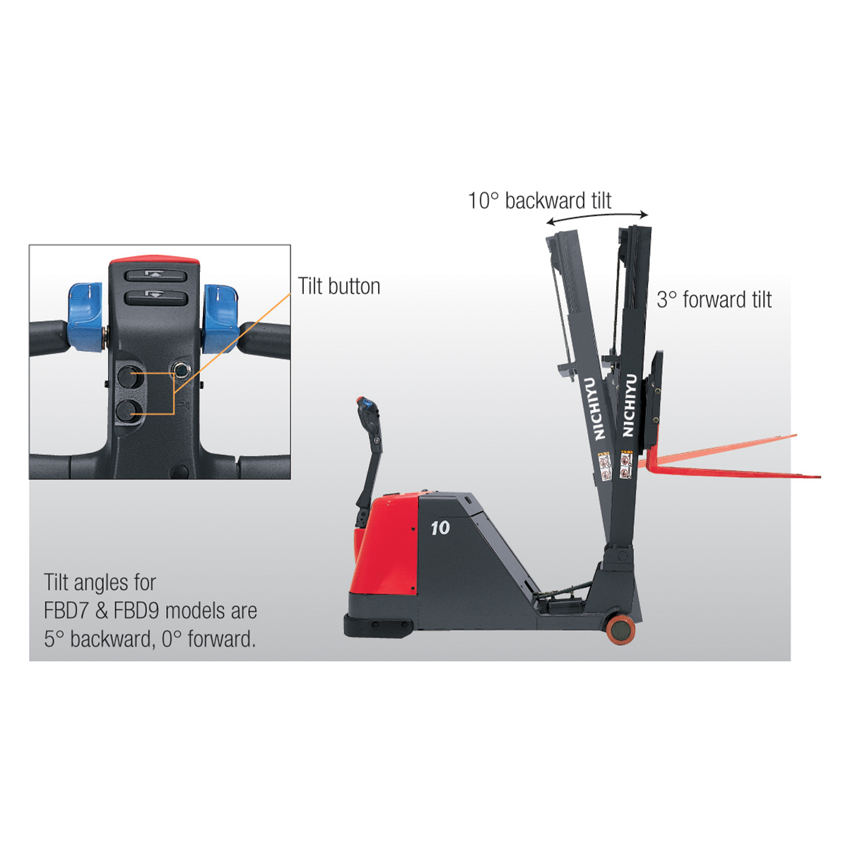 - Trang bị cột nâng nghiêng tiêu chuẩn (tùy chọn trên các model FBD7 và FBD9).